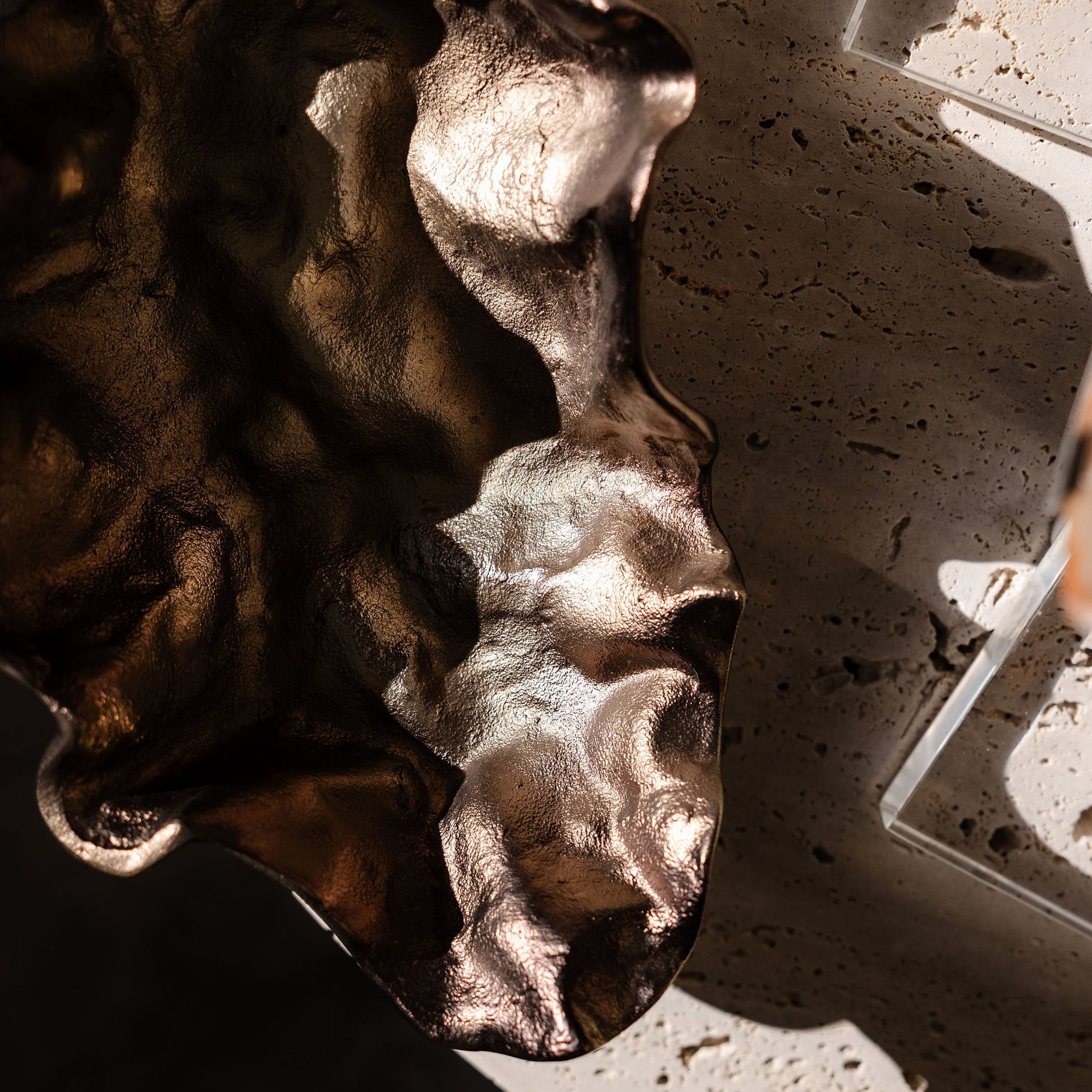 This Bronze Coloured Cast Aluminium Leaf Bowl is a striking home decor bowl crafted from antique brass cast aluminium. Its design features a natural, organic shape, seamlessly formed to create an elegant and sophisticated look. Each bowl is meticulously handcrafted by skilled artisans, ensuring that no two bowls are alike. The Cast Aluminium Bowl is available in two sizes. This range is for decorative use only, it is not food-safe or water-safe.