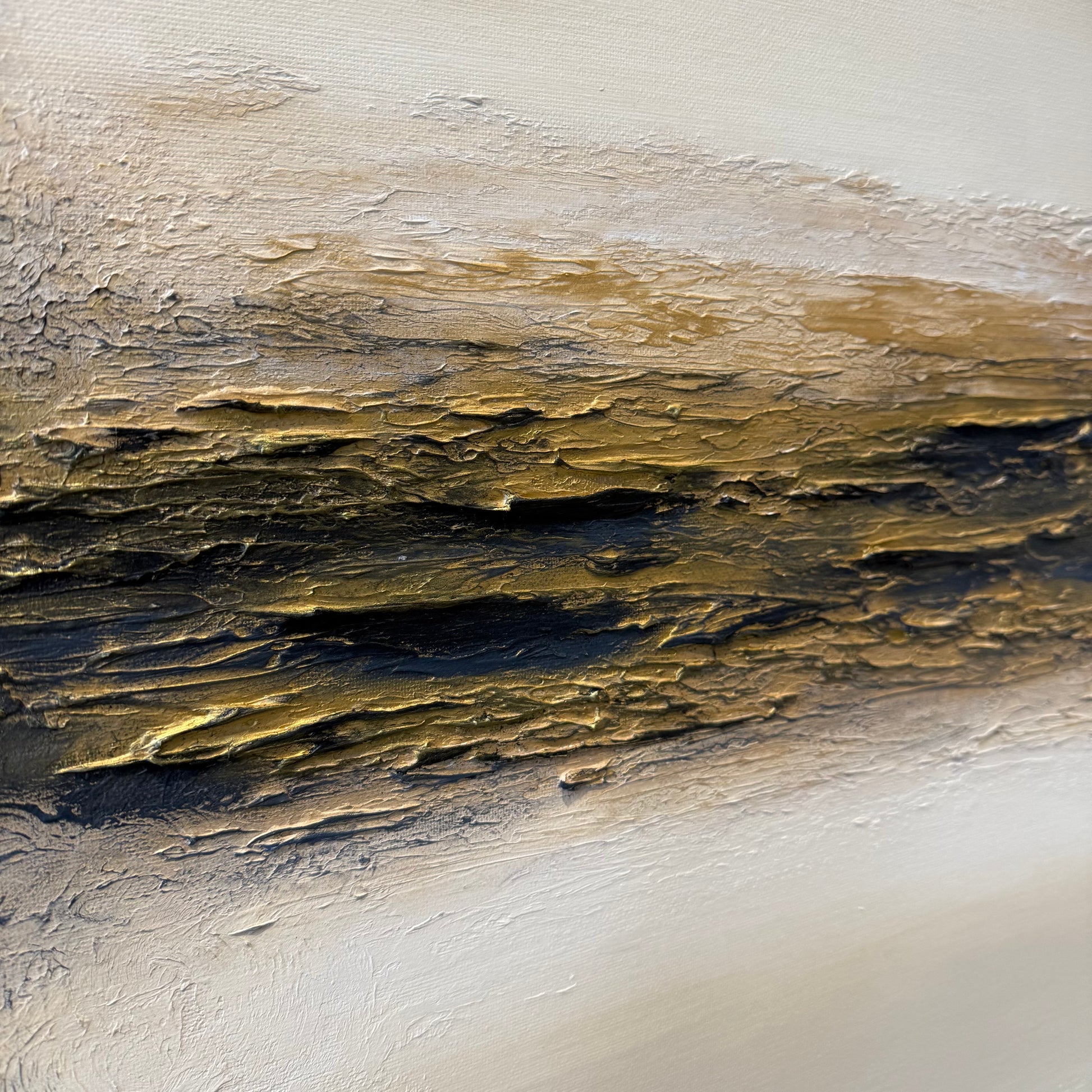 Our hand painted neutral toned canvas with added navy and gold heavy textured centre resembles the ocean with golden hour sunlight it creates the ultimate luxury comforting feel. Hang on a wall for the focal point in the room or add to a console table to add depth. This canvas creates layers with its heavy texture, it shows how much artistic charisma goes into every piece.