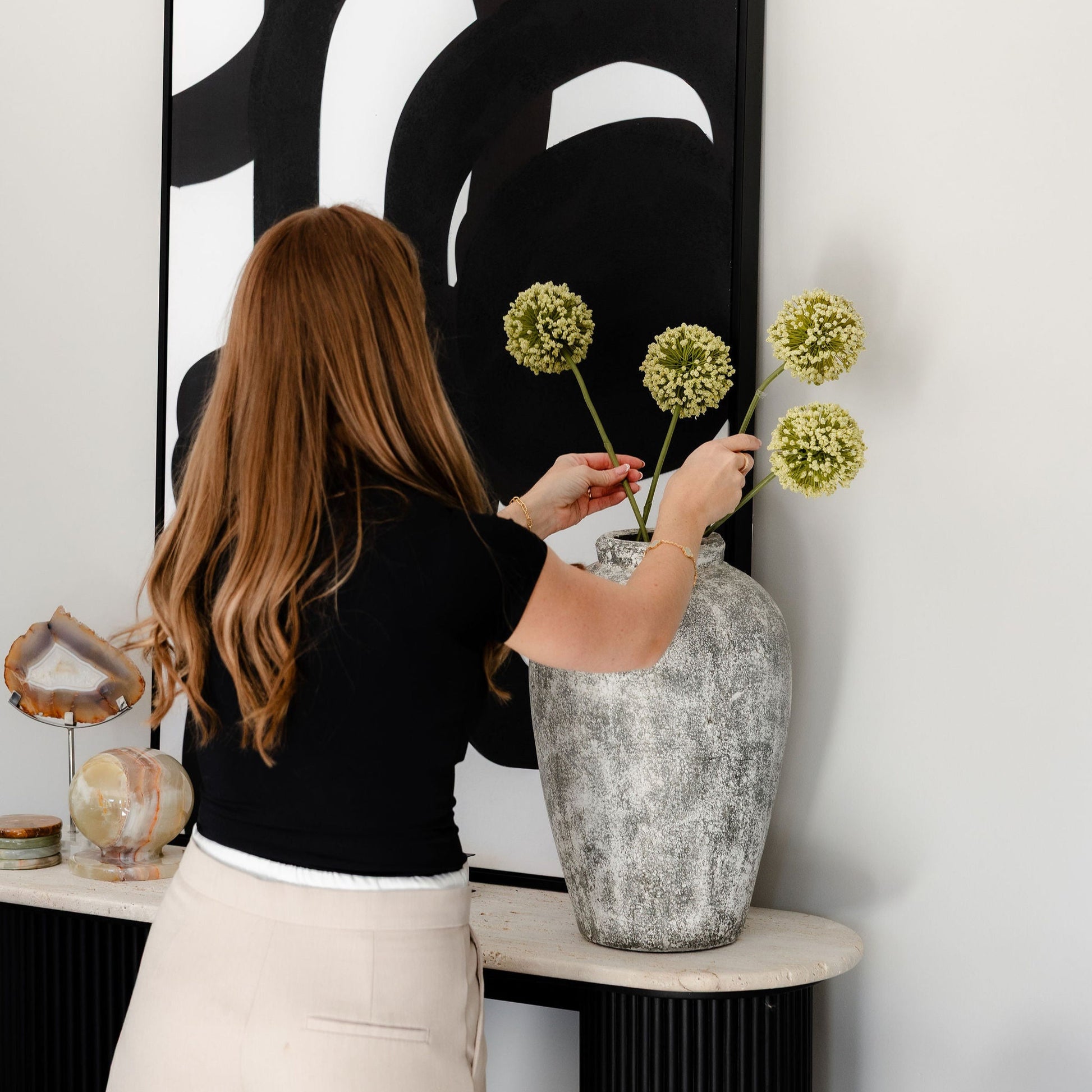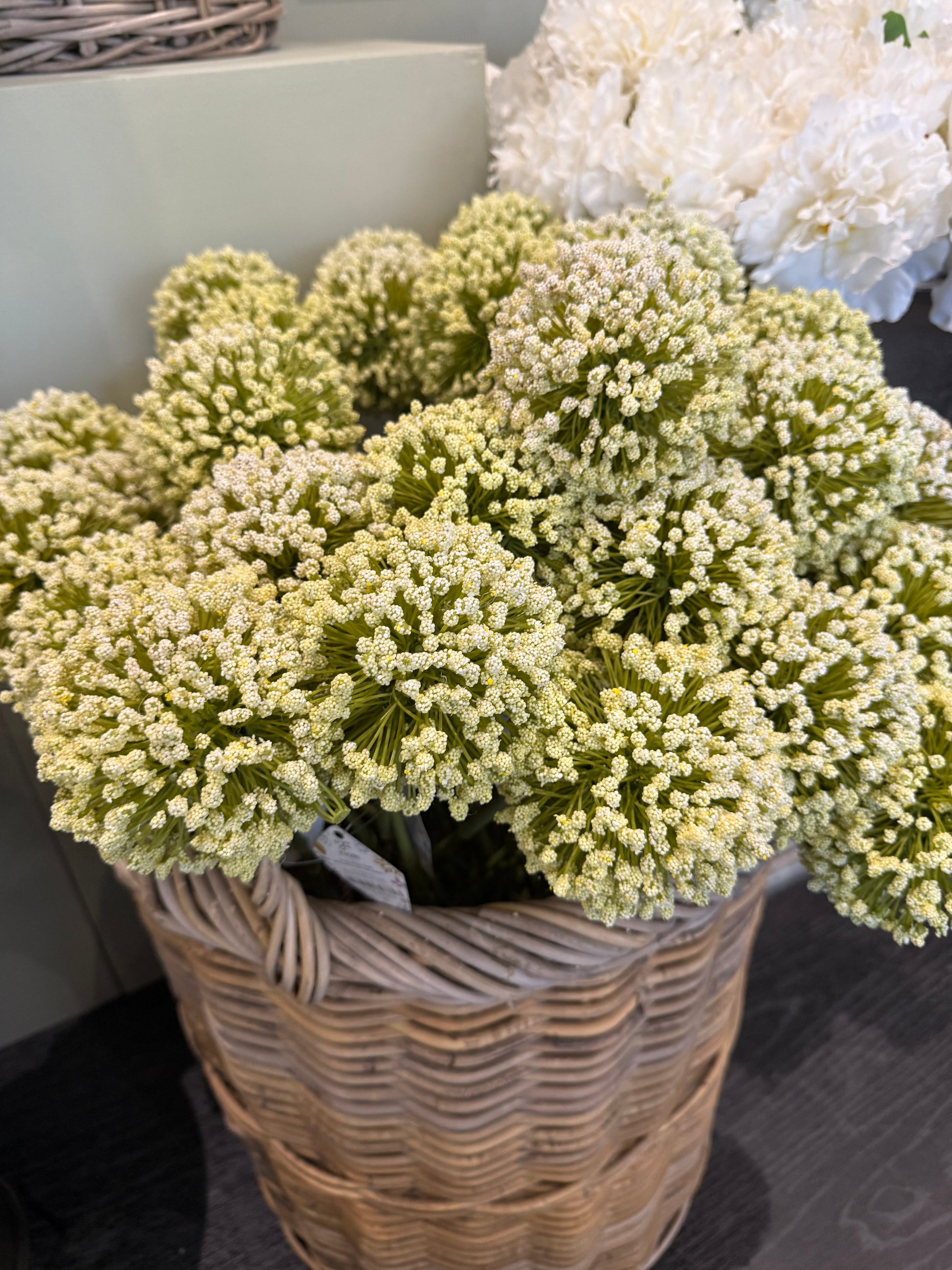 This allium stem ivory will transform the spring floral arrangement or wreath project in the living area with its realistic appearance and formation. The slim stem can easily be shaped or trimmed to fit a variety of contemporary vases and jars.