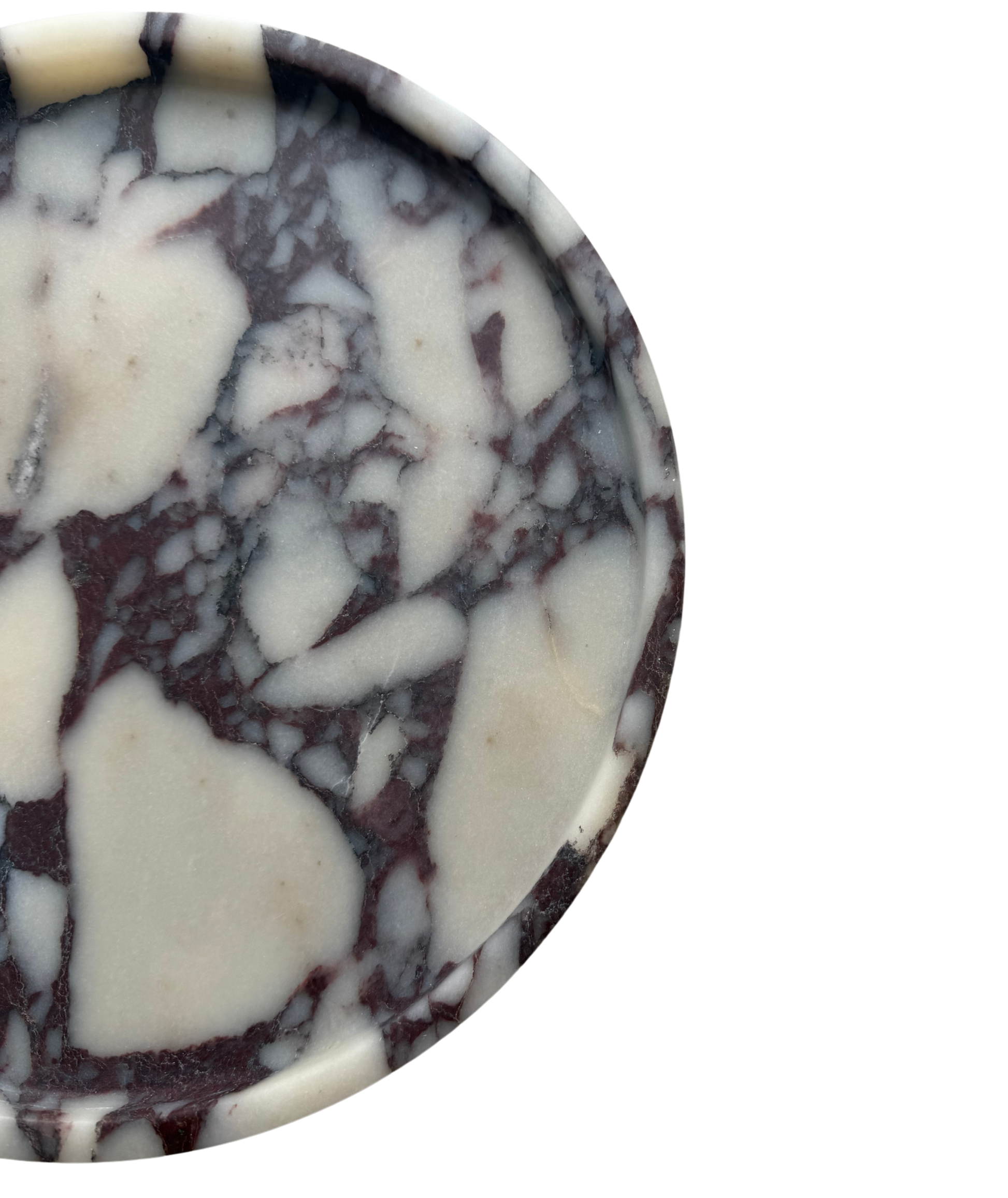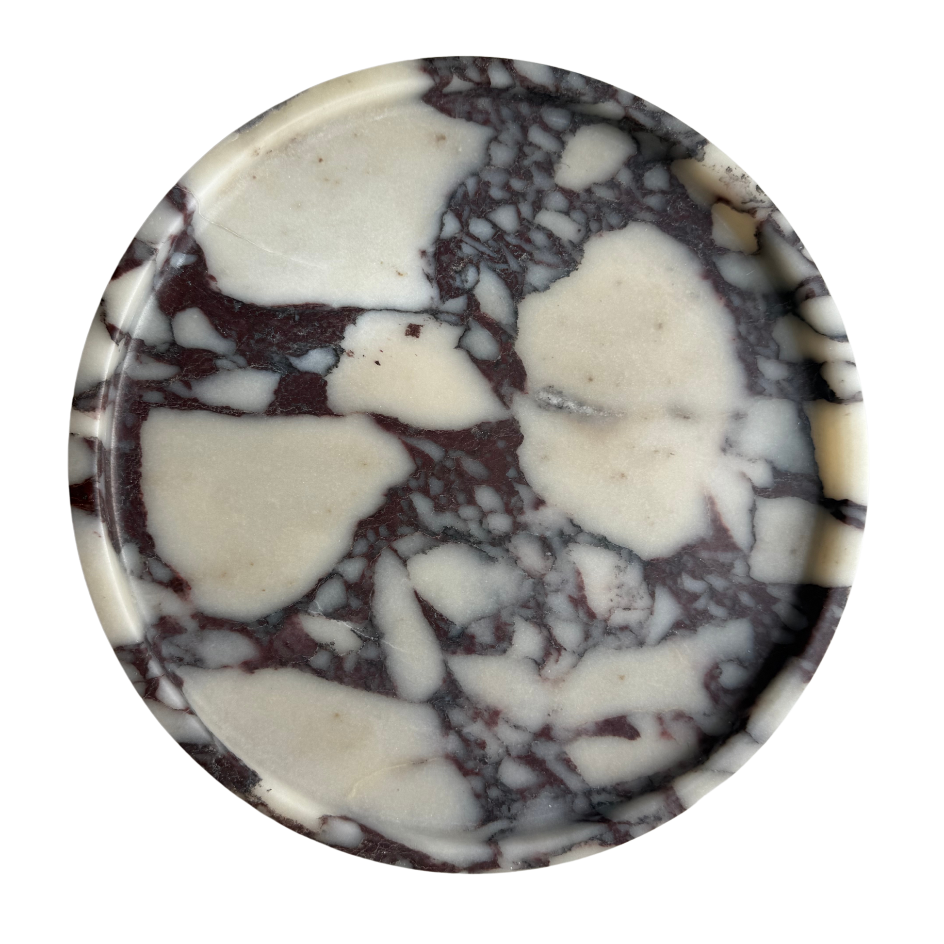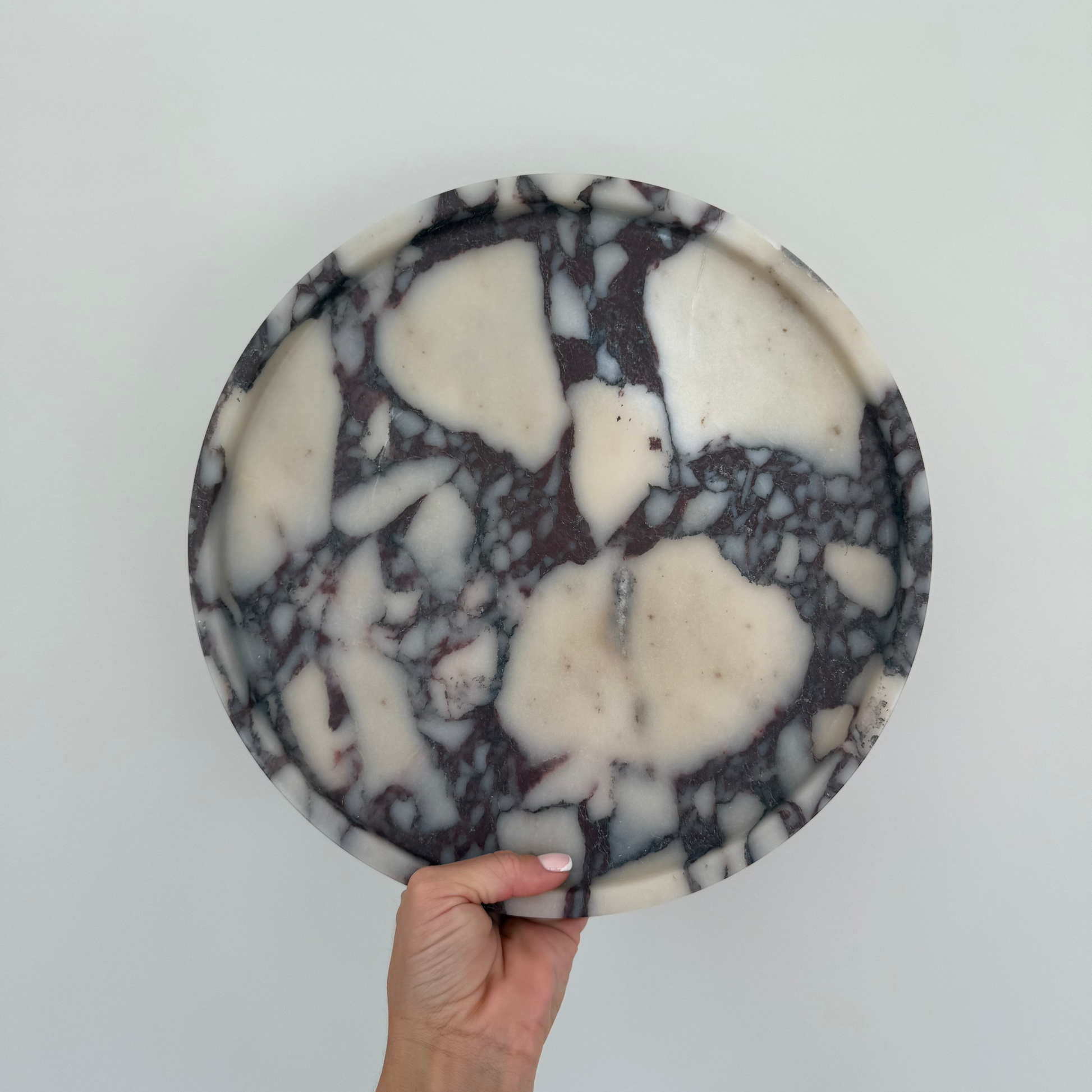 This large round calacatta viola marble tray is a perfect addition to any home, can be used in any room from bedroom to keep your jewellery on, to the living room to add decorative ornaments too.