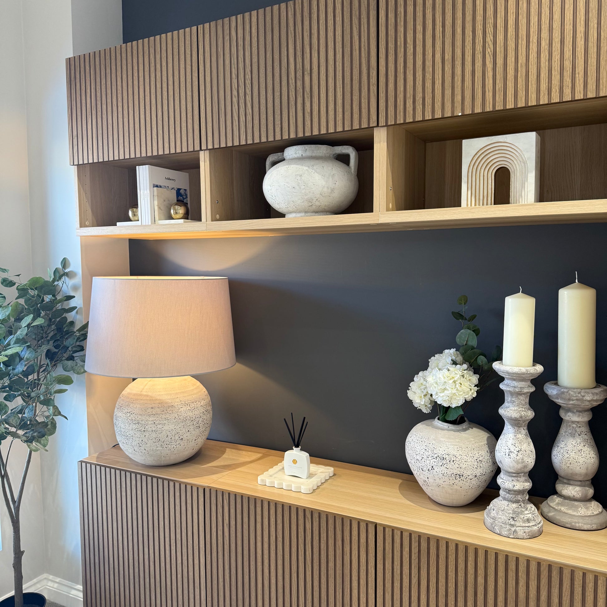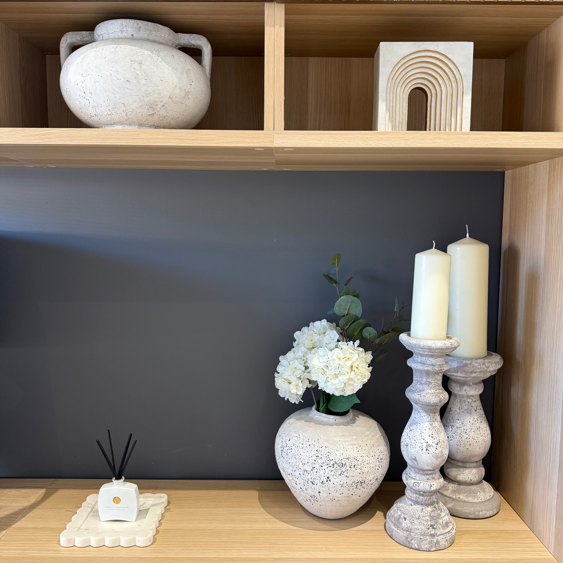 The Stone Effect Pelike Pot exudes timeless elegance, ideal for faux blooms. Use florist's wrap for real flowers. A must-have for stylish spaces.