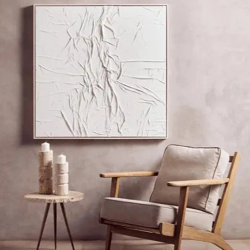 This canvas wall art highlights the hand-painted white fabric, making it stand out with its intricate pattern that adds both depth and texture. The wall art offers a timeless design that will elevate the modern appeal of any home or office space.